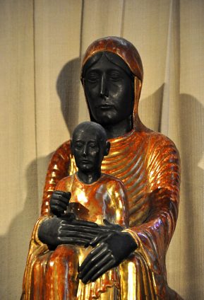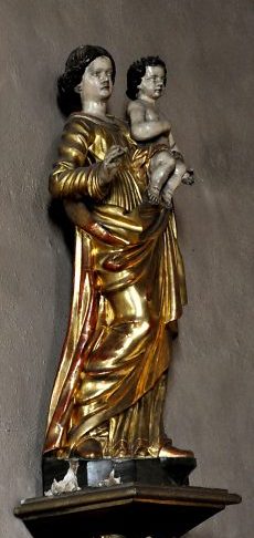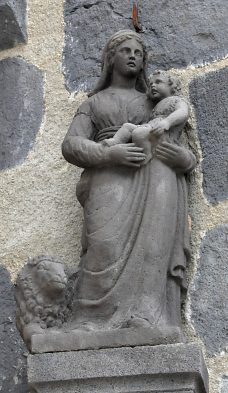 - accompagne la statue de Notre-Dame, comme l'illustre