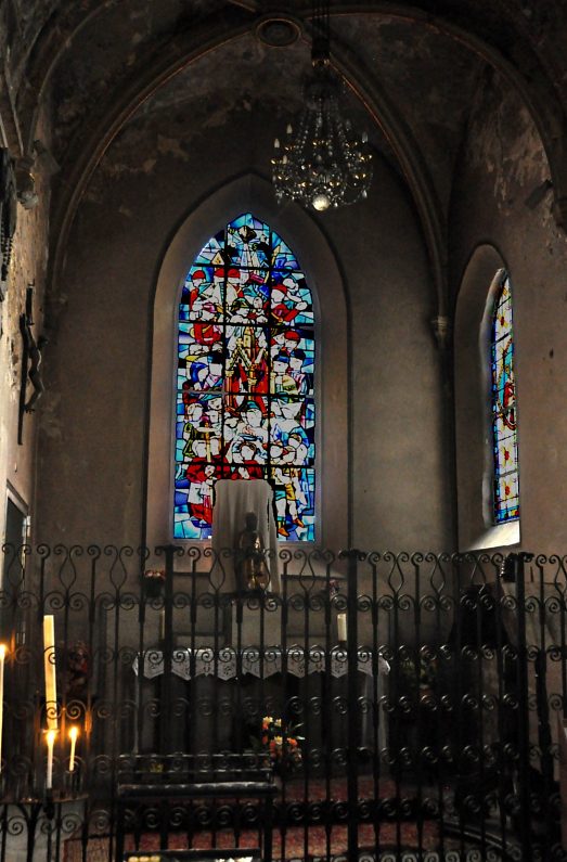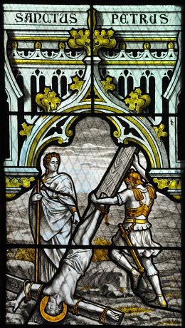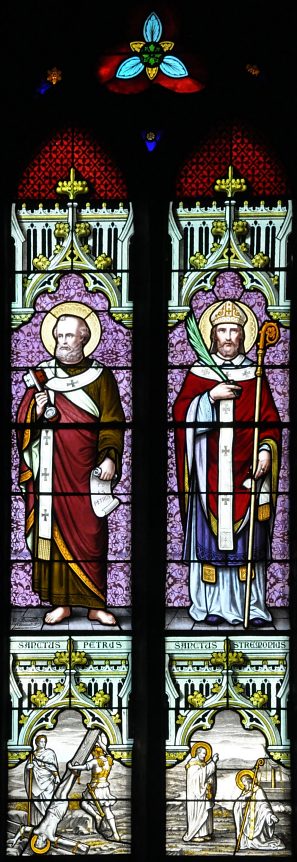 Soubassement du vitrail de saint Pierre et saint Austremoine.