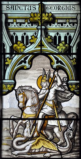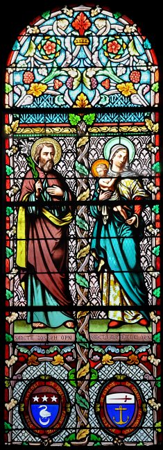 Soubassement du vitrail de saint Georges et de saint Paul.