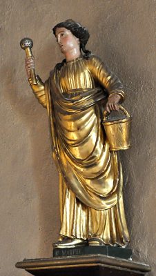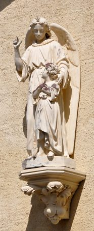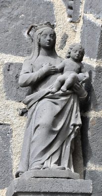 - accompagne la statue de Notre-Dame, comme l'illustre