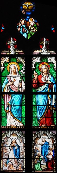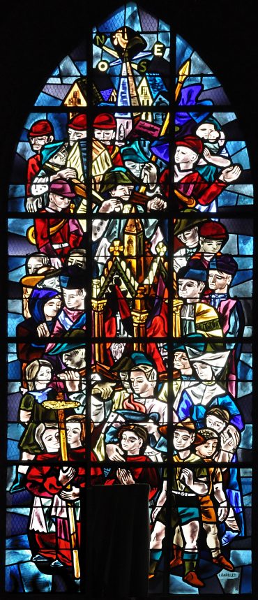 Soubassement du vitrail de saint Pierre et saint Austremoine.