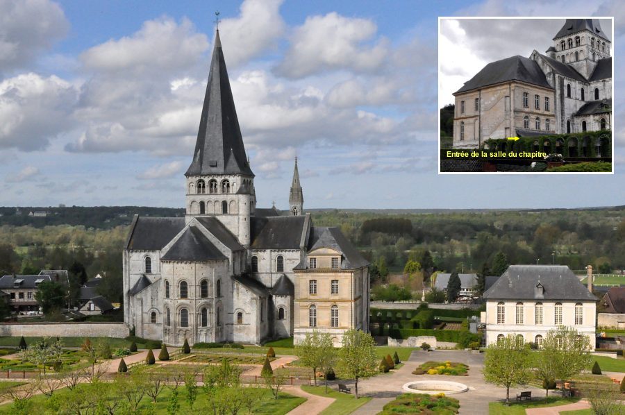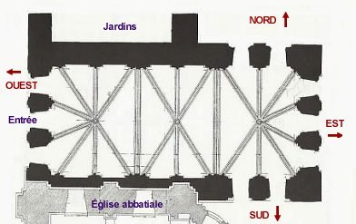 Dans l'encadré : la salle capitulaire vue de l'ouest.