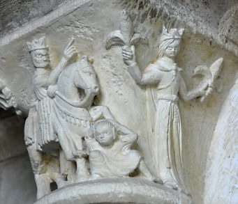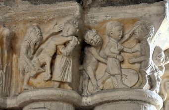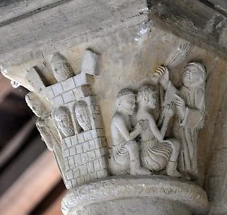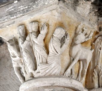 Chapiteau du XIIe siècle : L'entrée du Christ à Jérusalem.