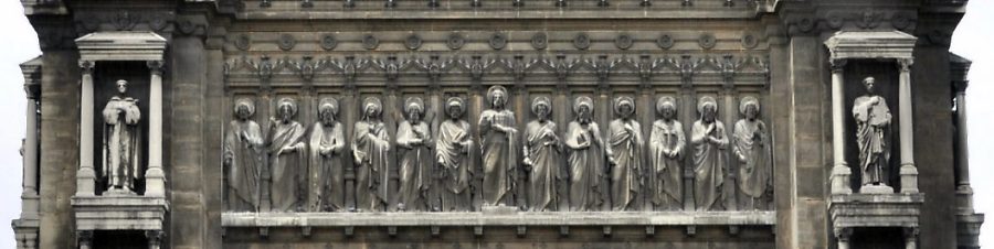 Galerie de la façade : Jésus est entouré des apôtres. |