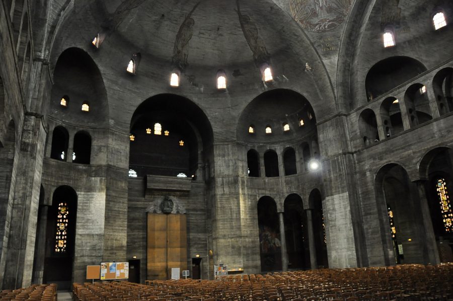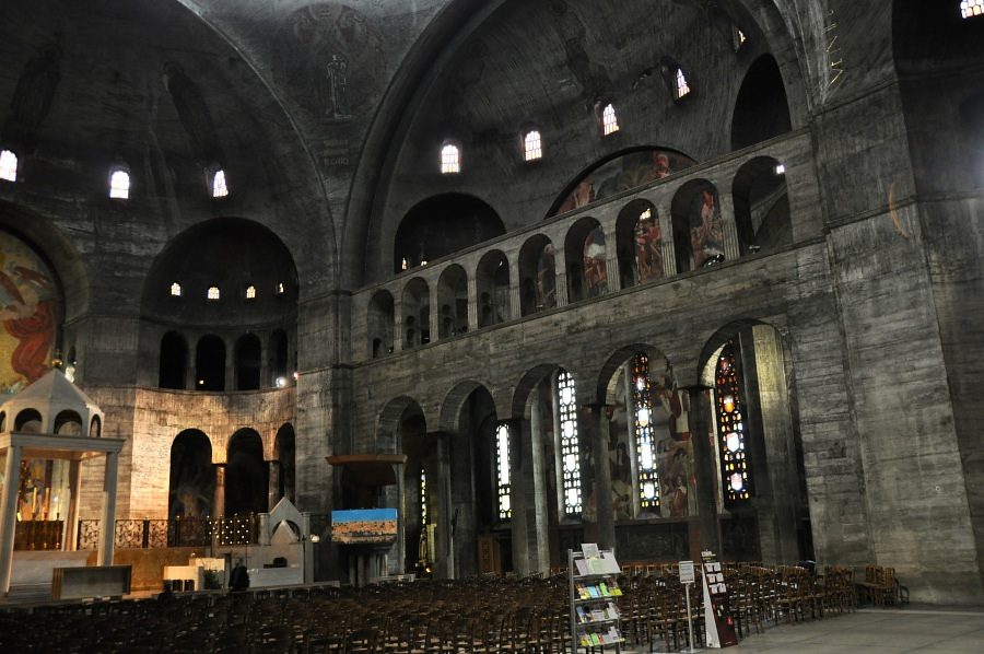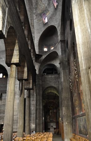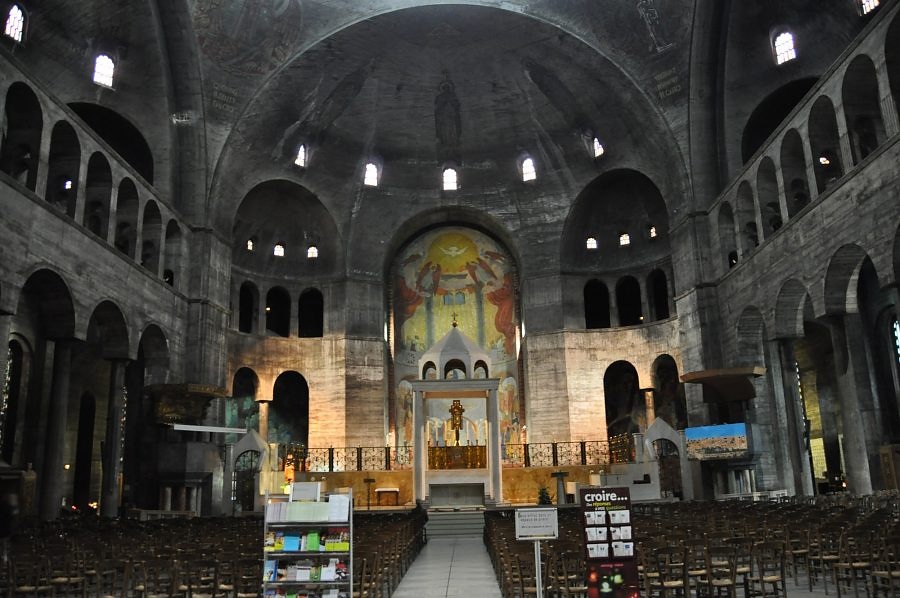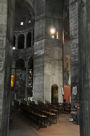 Le chœur est dominé par les grandes structures de béton de l'abside.