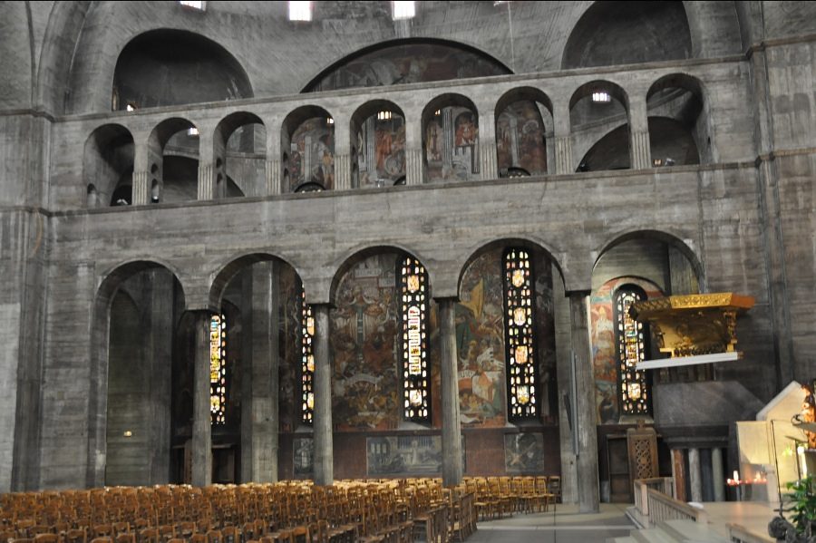 A l'arrière-plan et au centre, la fresque de Maurice Denis : «La Pentecôte» |