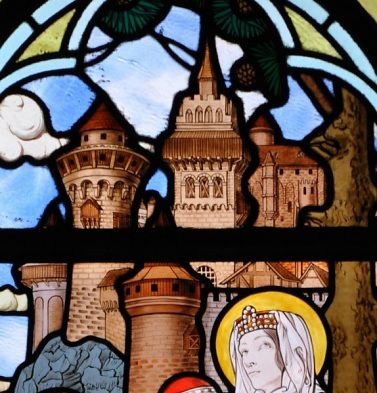 Les vitraux de Félix Gaudin sont très travaillés. Ici, le château