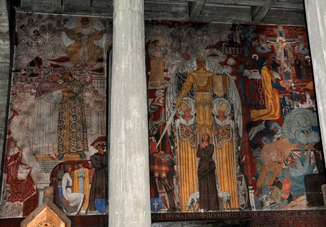 Chapelle des Vierges À gauche : «Concile de Florence» (Odette Pauvert) À droite : «Vie de Jeanne d'Arc» (André Mériel-Bussy)