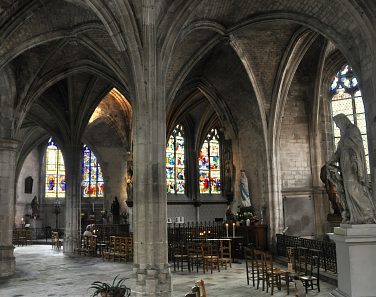 autels, statues, peintures, vitraux anciens, le tout baigné