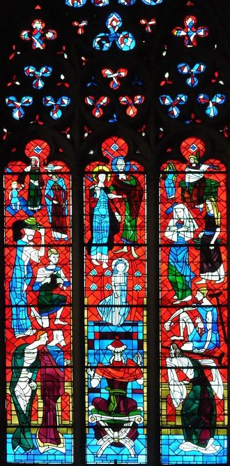 de la scène de la Dormition. Ainsi dans un vitrail de