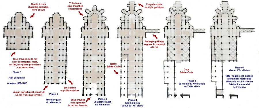 de trois absidioles au nord et au sud, d'un transept et de deux