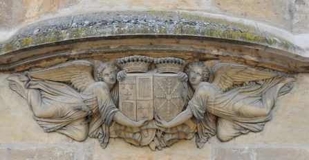 Un ange tenant deux blasons