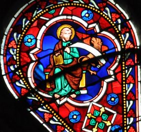 Vitrail de saint Éloi, trésorier du roi Dagobert Ier