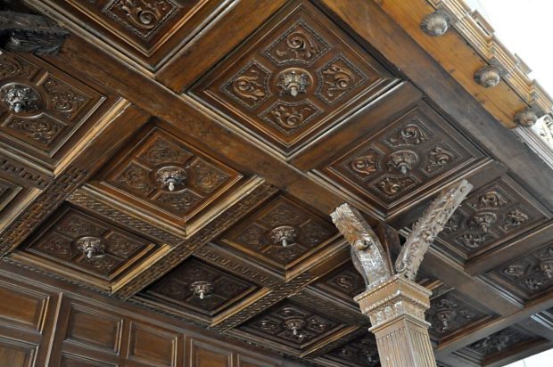 en bois qui recouvre la nef. Ces piliers interrompus se voient