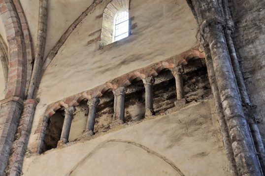 l'on peut voir des arcades, des chapiteaux, des colonnes engagées,