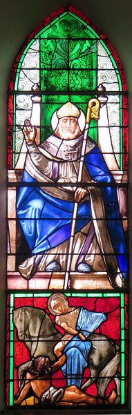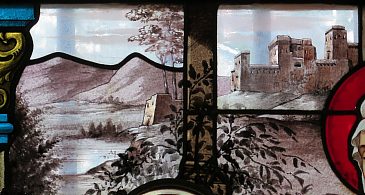 Partie basse d'un vitrail du chœur créé vers 1887. |