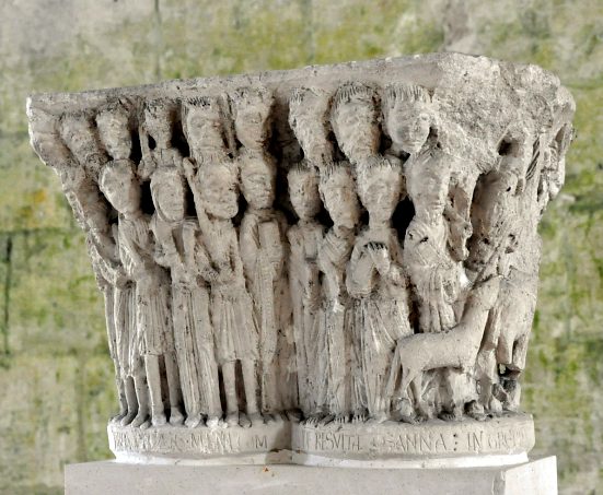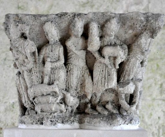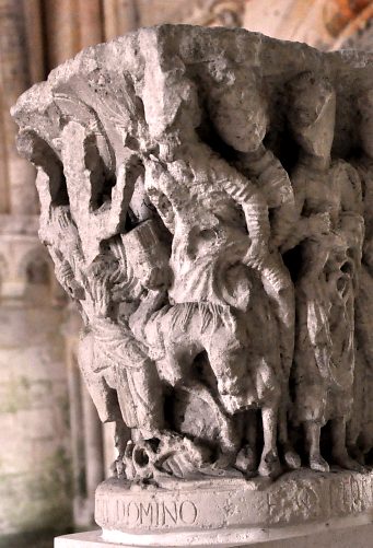 Chapiteau du XIIe siècle : L'entrée du Christ à Jérusalem.