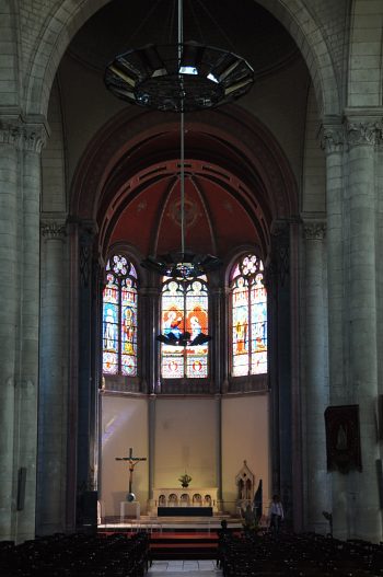 La chapelle de la Vierge avec le vitrail des scènes de la Vie