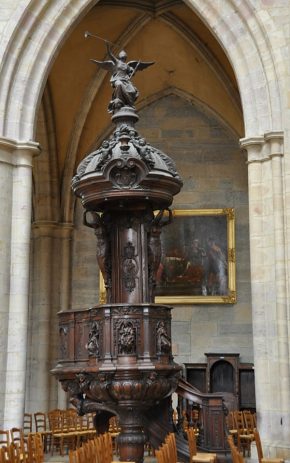 La flèche, refaite au XIXe, culmine à 93 mètres.