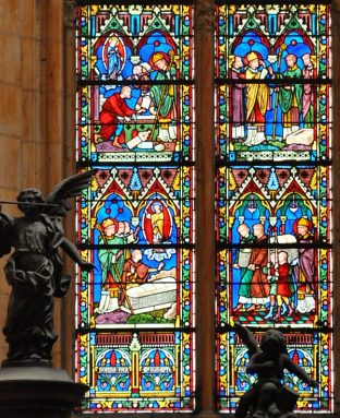 Les vitraux de l'abside illustrent les saints bourguignons,