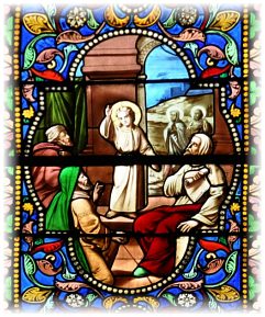 Vitrail à trois lancettes dans la chapelle du Sacré-Cur