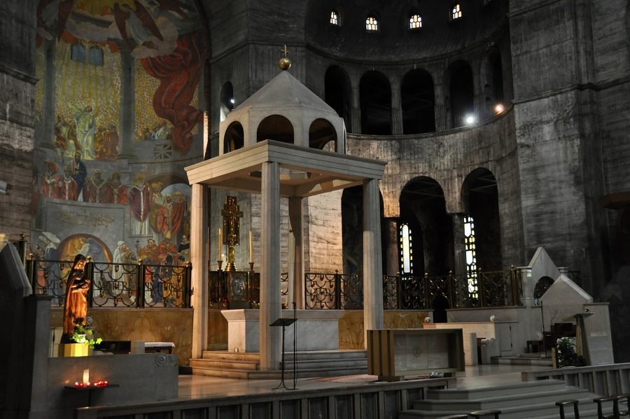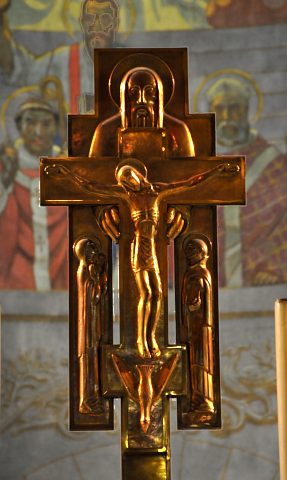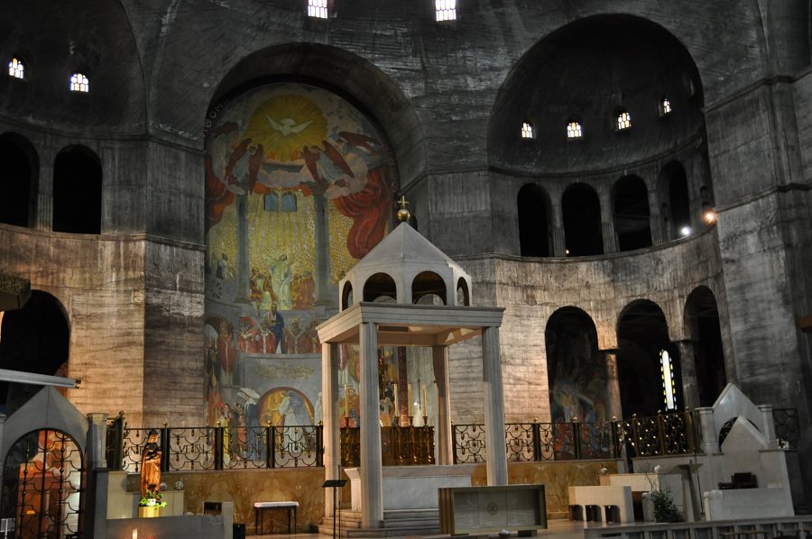 Le chœur est dominé par les grandes structures de béton de l'abside.