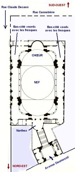 L'église vue depuis l'angle des rues Cannebière et Claude Decaen.
