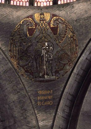 en charge du grand décor de l'abside, peu à l'aise avec la