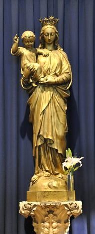 La mosaïque représente la Vierge à l'Enfant, saint Joseph,