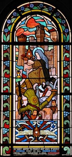 Les vitraux de Félix Gaudin sont très travaillés. Ici, le château