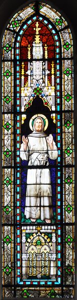 Ces vitraux représentent, de gauche à droite, saint François