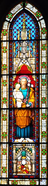 au pied de saint Joseph, dans le vitrail central de l'abside.