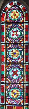 de vitraux à motifs géométriques assez clairs, ce qui assure à la