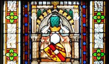Dans le bas du vitrail, les armoiries de la maison