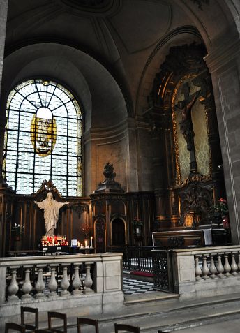 pas. Le vitrail montrant saint Sulpice et Jean-Jacques
