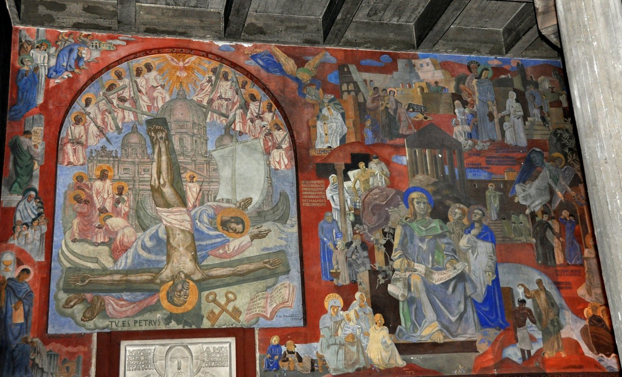 Chapelle des Martyrs À gauche : «Saint Pierre, saint Paul» (Henri de Maistre) À droite : «L'Église enseigne au vieux monde» (Pauline Peugniez)