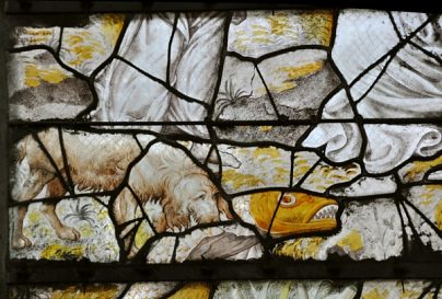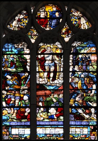 On remarquera dans le panneau supérieur du vitrail un épisode