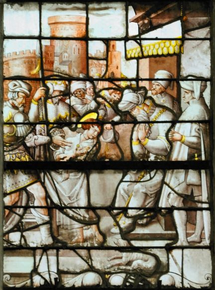 Vitrail de la Passion (1531), détail : Entrée